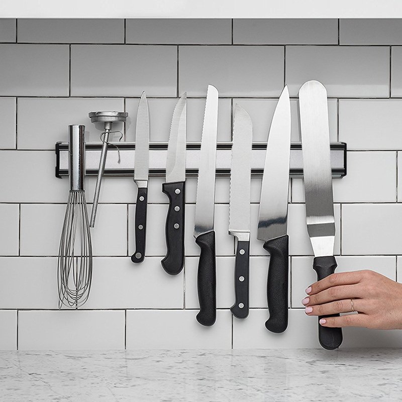 Organize it All: This magnetic strip has an extended length that allows you to hold more knives than most knife blocks on the market while still being small enough to versatilely fit into many nooks and crannies in your kitchen or workspace.